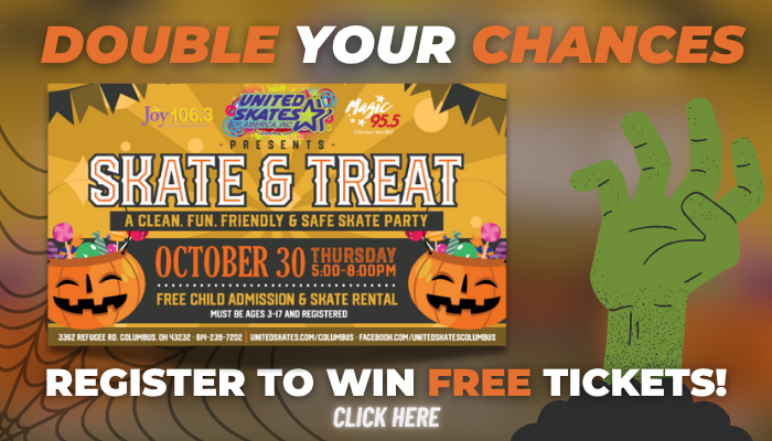 Wanna come to “Skate & Treat”? DOUBLE YOUR CHANCES! Yes, there’s so many ways to get in FREE! Click BELOW and REGISTER to win free tickets to our Halloween party, going down Thursday, October 30! For more information about “Skate & Treat” and to purchase additional tickets, click here!